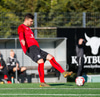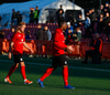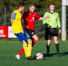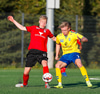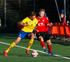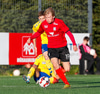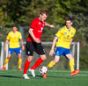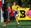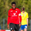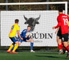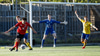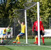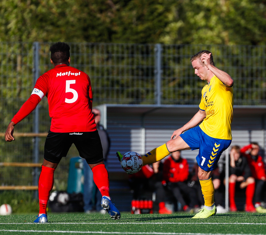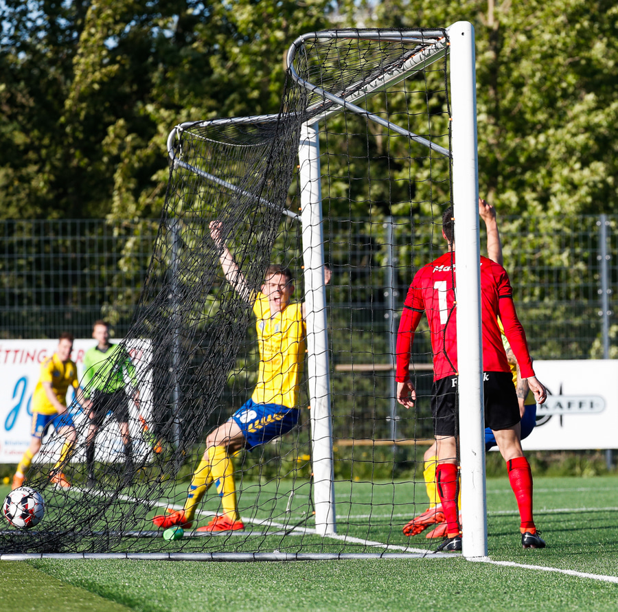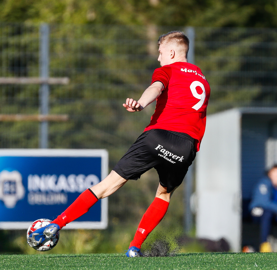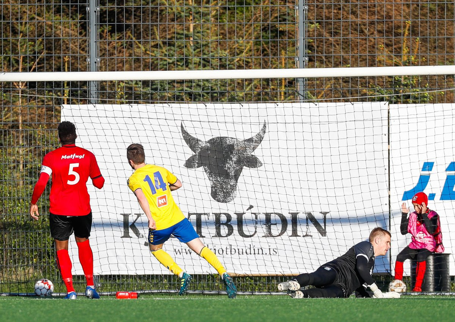 Kristófer fær hann í gegn frá Alberti og er í mjög þröngu færi. Setur hann beint á Trausta og boltinn lekur inn. Trausti hefði eflaust viljað gera betur þarna.