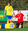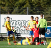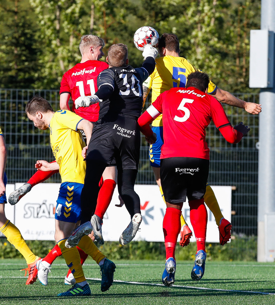 GEGGJUÐ VARSLA! Trausti í marki Aftureldingar þarf að taka á honum stóra sínum þarna. Ingibergur Kort keyrði inná völlinn og lét vaða. Vel gert hjá báðum.