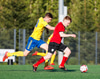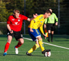 Guðmundur Karl keyrir inn í teig Aftureldingar en skotfærið er þröngt og boltinn endar í hliðarnetinu.