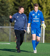 Nei. Alexander Aron reynir að setja boltann undir varnavegginn. Ég vona að hann hafi verið að reyna þetta. Beint í vegginn og laflaust.