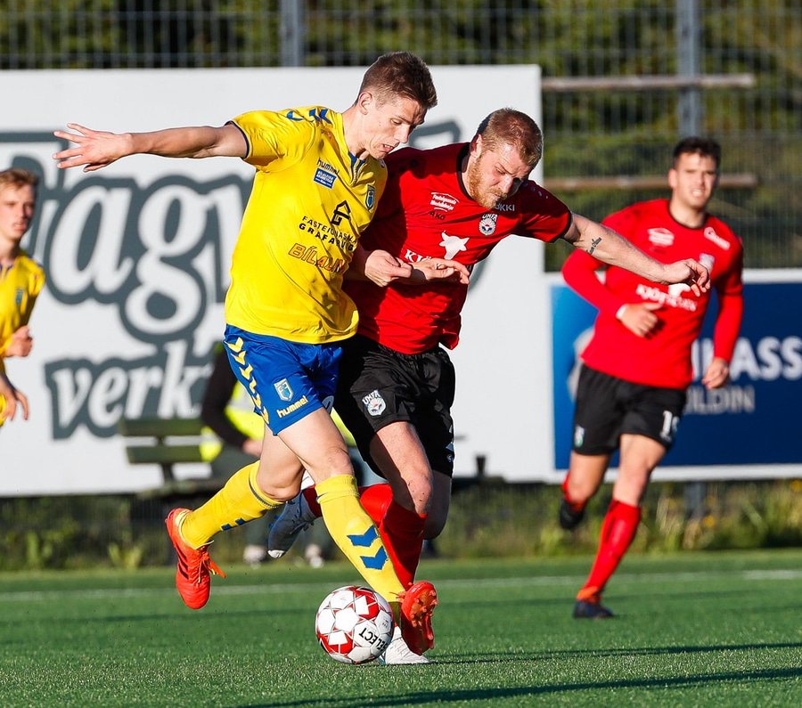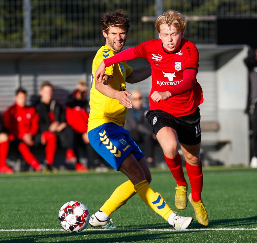 Jason með flottan sprett. Keyrir upp miðjuna, fer illa með Hans Viktor, finnur Andra Frey í gegn og hann á skot sem Atli Gunnar ver út í teig en nær svo að handsama.