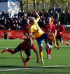 Heimamenn fá horn. En ekkert kemur upp úr því.