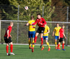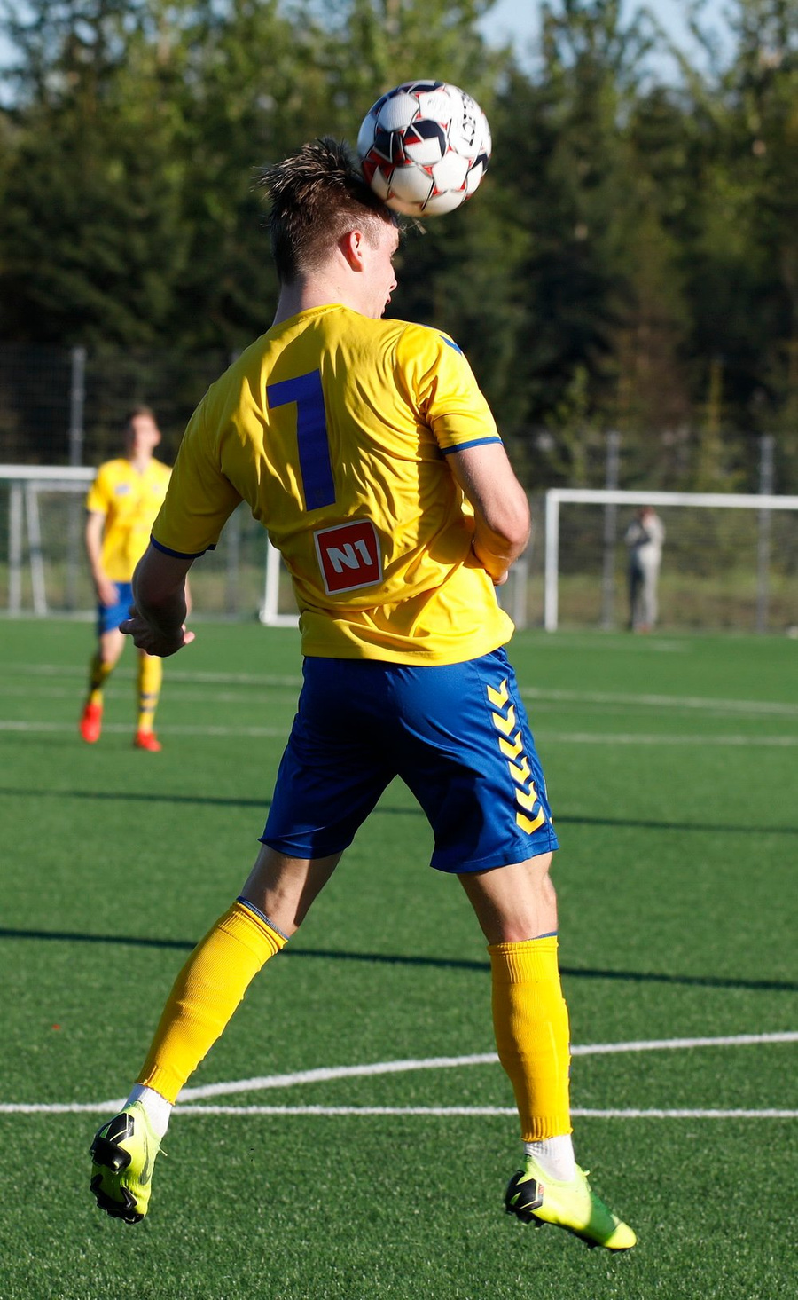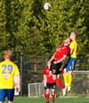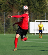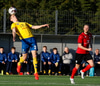 Þarna munaði mjóu! Ingibergur Kort fær flott skallafæri á fjærstjöng en boltinn sleikir stöngina!