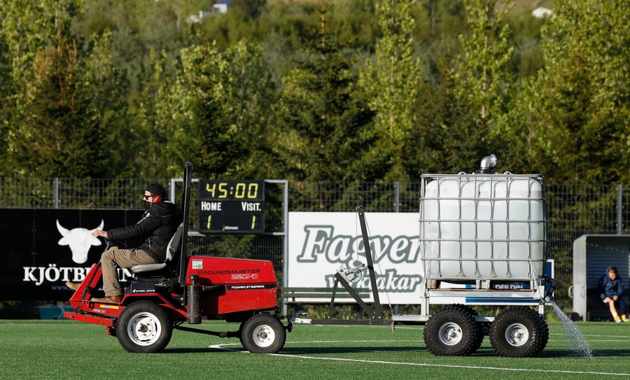 Sólin skín skært hér í Mosfellsbænum og því tilvalið að skella sér á völlinn.