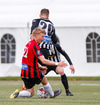Atli Sigurjóns brýtur hér klaufalega á Loga Tómasson á stórhættulegum stað. Logi tekur aukaspyrnuna sjálfur framhjá veggnum en Beitir er snöggur í hornið og grípur boltann.