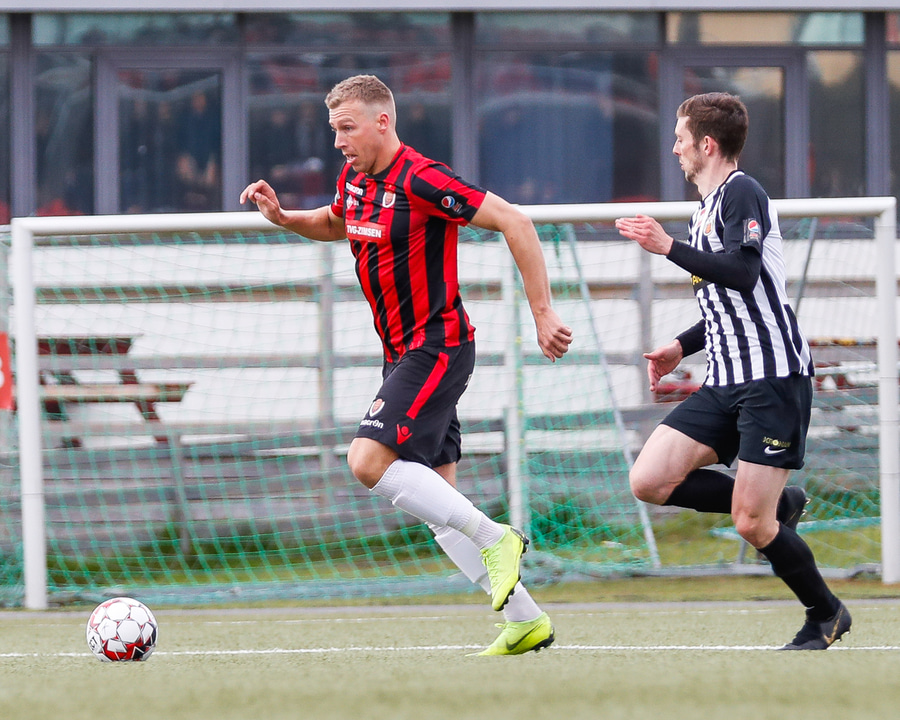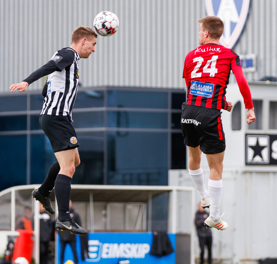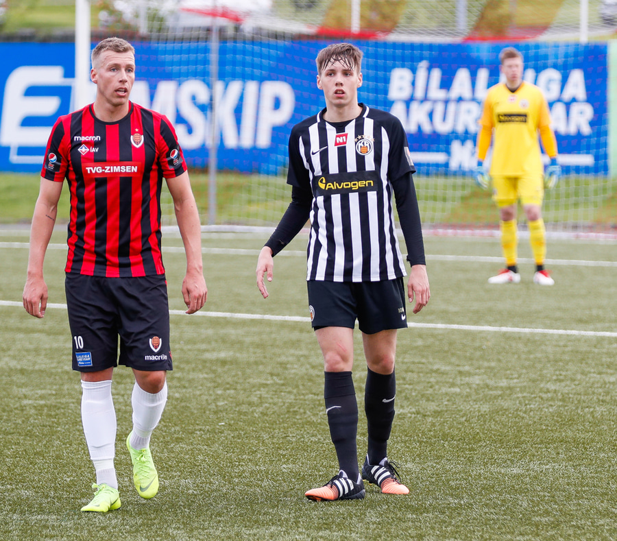 Atli með sendingu á Tobias sem að á skot sem að Þórður ver. Ægir Jarl er fyrstur að átta sig og nær boltanum, rennir honum á Tobias aftur en Logi Tómasson nær að verja skot hans á línu.
