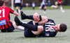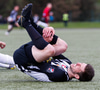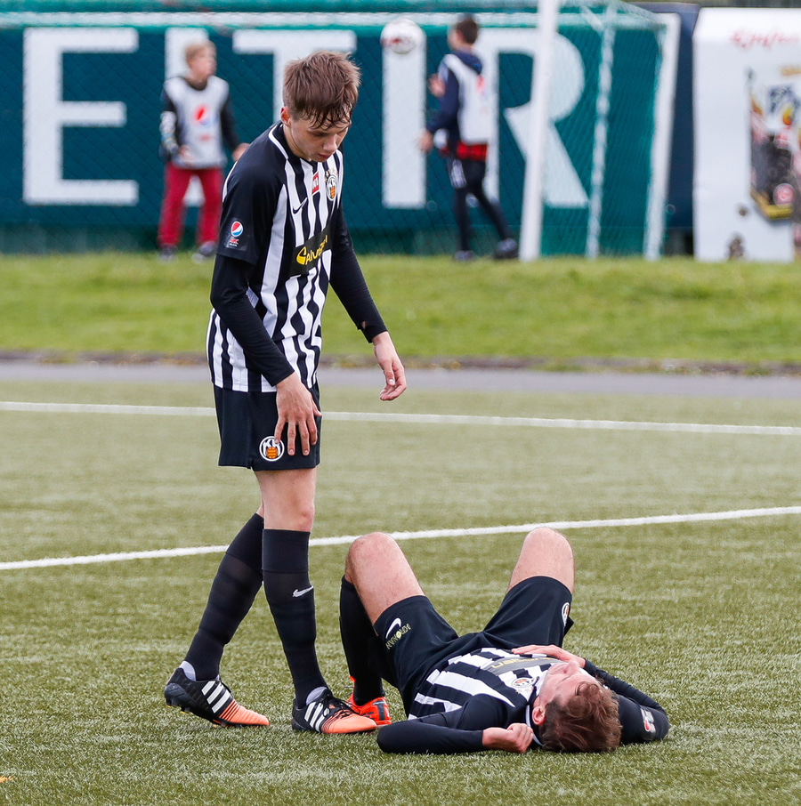 Logi brýtur hér á Kennie í svona tíu sekúndur samfleytt en sleppur við gult spjald.