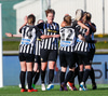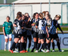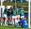 Það hlaut að koma að því, hornspyrnan er fullkominn, hár bogi sem dettur fyrir Kristínu, sem skallar auðveldlega í markið!
