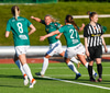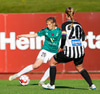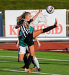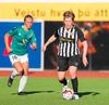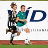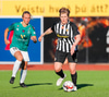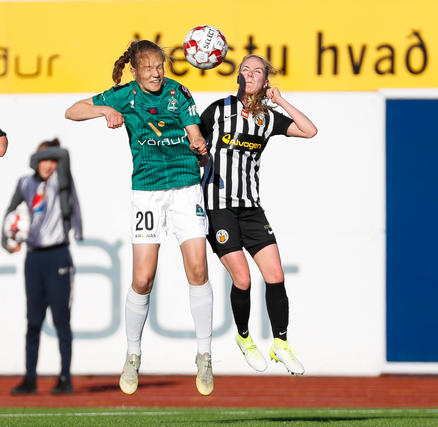 Katrín með hættulega fyrirgjöf sem Guðmunda er hársbreidd frá því að ná að skalla.