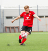 Már með flottan sprett upp kantinn og finnur Fred inn í teig. Hann á gott skot en Andri Þór með mjög góða vörslu.