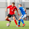Fram í fínu færi. Fred finnur Má í gegn en Andri Þór ver vel með löppunum út í teig og Afturelding nær að hreinsa.