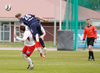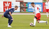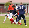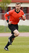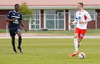 Dino brýtur klaufalega á Rafael á miðjum vallarhelmingi Þórsara. Lárus undirbýr sig undir að taka spyrnuna.