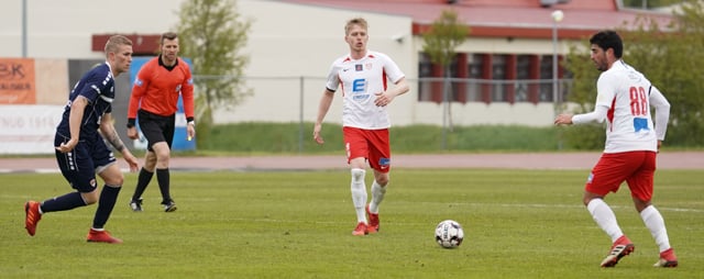 Siggi Marínó fær boltann eftir að Manni, Svenni og Nacho hefðu gert vel í uppspilinu.