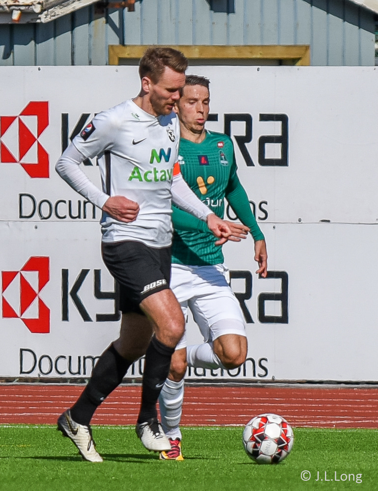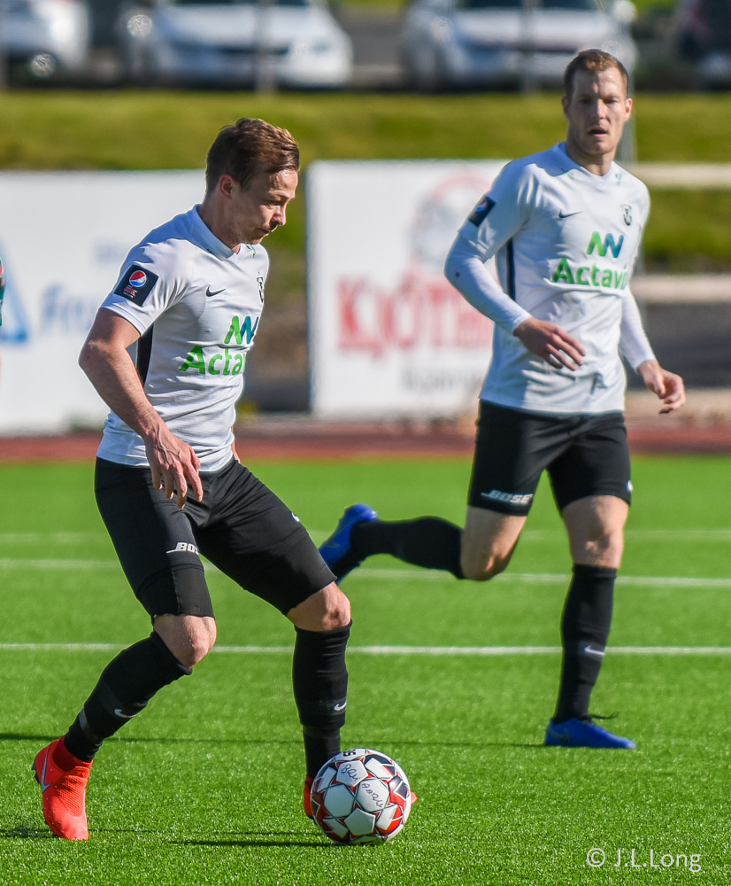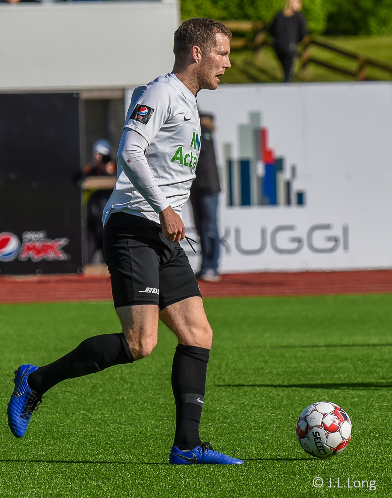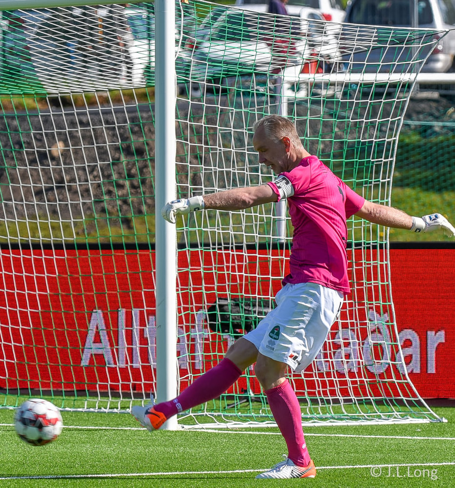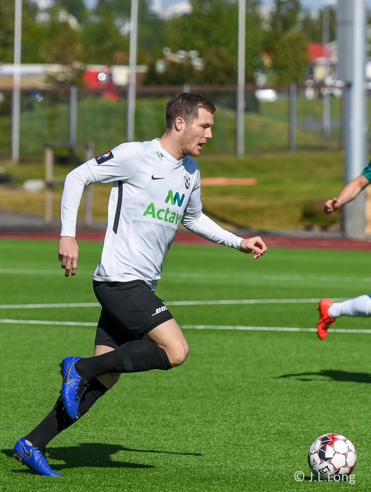 Björn Daníel með frábæra sendingu innfyrir á Jákup sem að skýtur framhjá markinu.