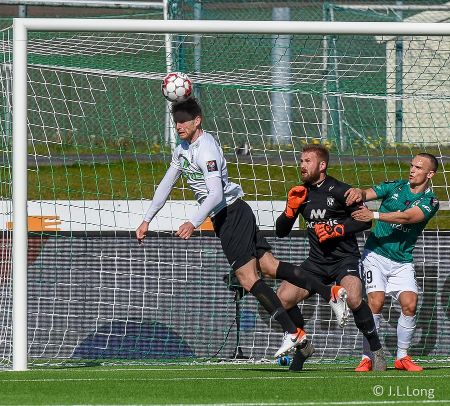 Höskuldur með fasta fyrirgjöf beint á kollin á Viktori Karli en Vignir með stórkostlega markvörslu.
