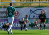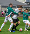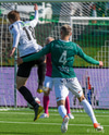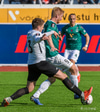 Aron Bjarnason fær boltann hér frá Jonathan Hnedrickx á vítateigshorninu og setur hann fallega í fjærhornið. Þetta er fljótt að gerast í þessu.