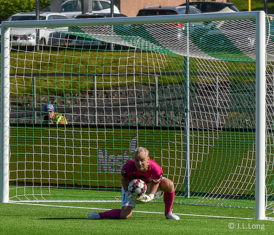 Thomas Mikkelsen með fína tilraun en Vignir er vel á verði í markinu og handsamar knöttinn.