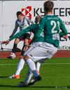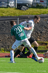 Brynjar Ásgeir reynir hér skot eftir góðan undirbúning Jónatans en það er beint á Gulla í markinu.