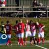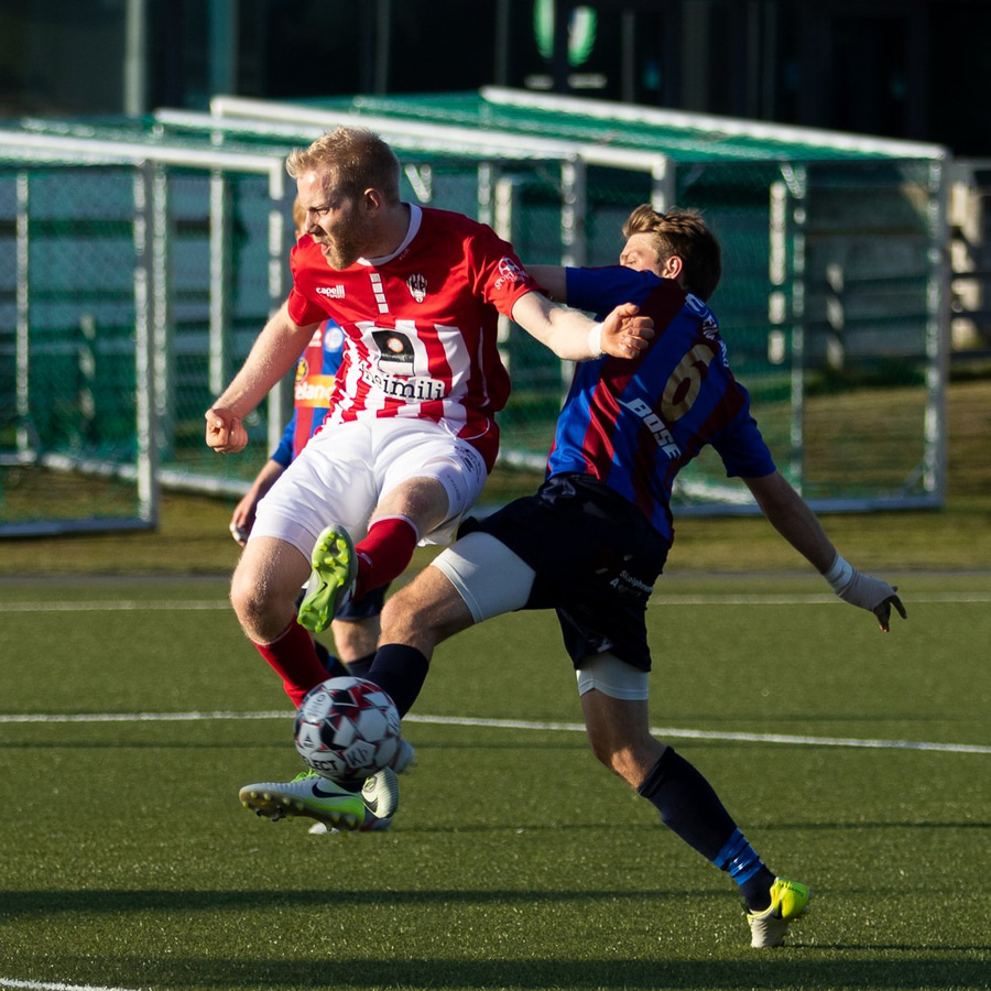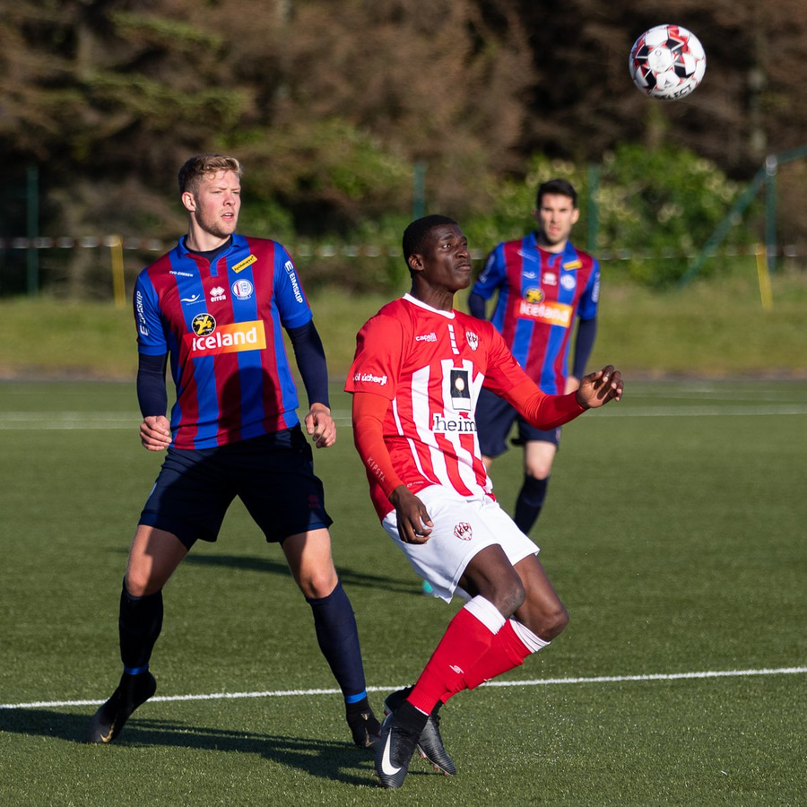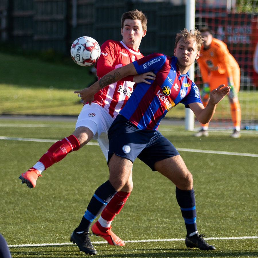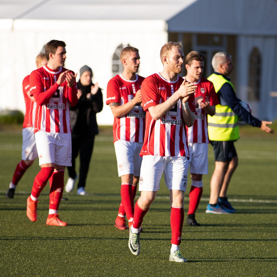 Dauðafæri! Leiknismenn bjarga á línu í tvígang eftir skot frá Jasper sem var sentímetrum frá því að setja hann yfir línuna