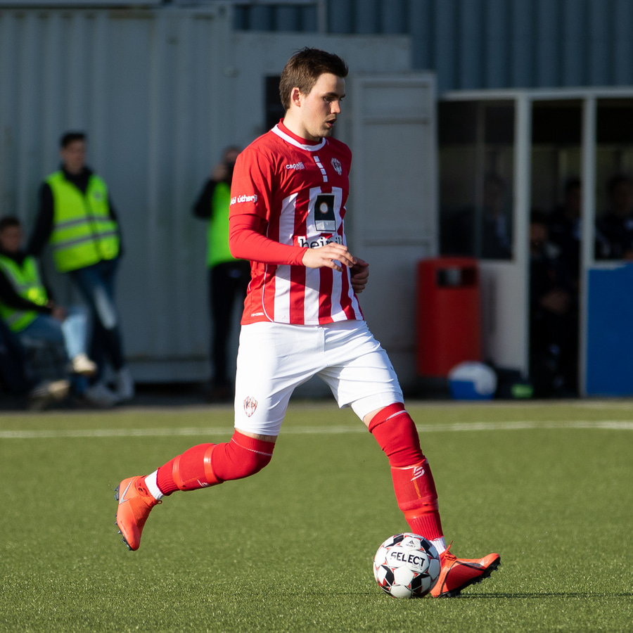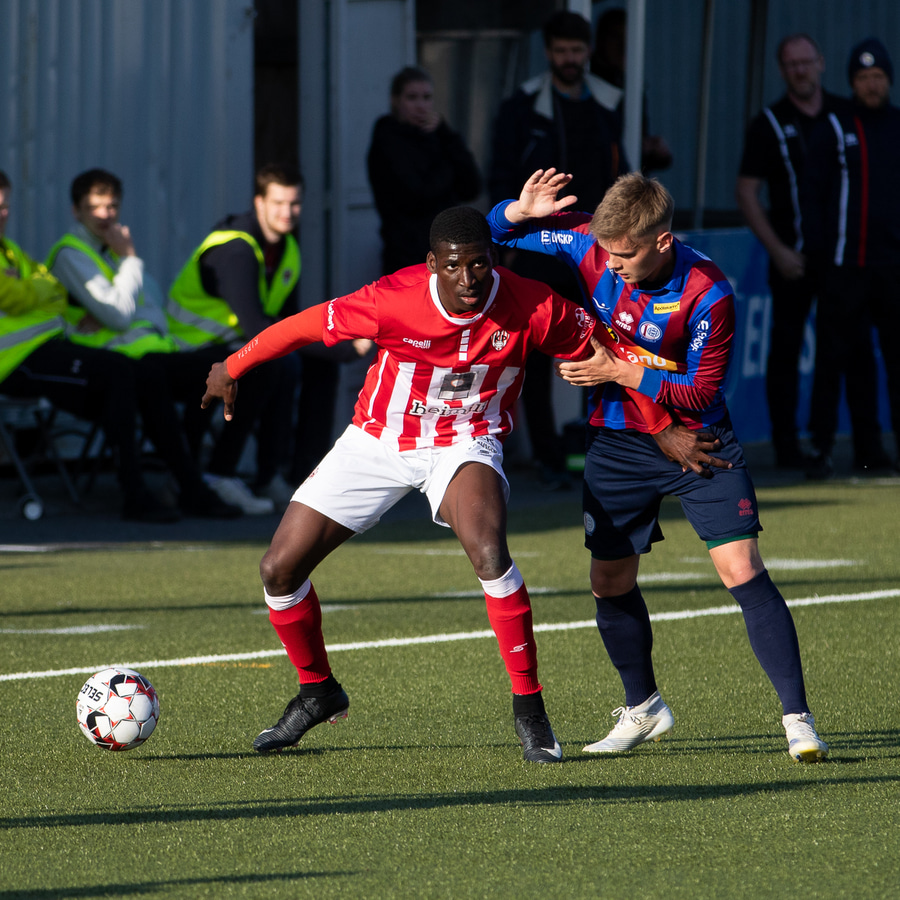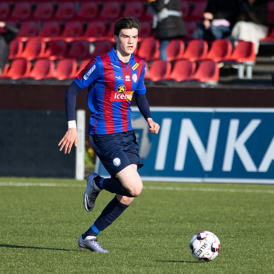 Sólon Breki keyrir upp hægri kantinn en missir boltann of langt frá sér og Arnar Darri tekur hann