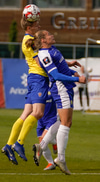 Alexander Groven með góða fyrirgjöf á Hallgrím Mar sem að skallar rétt framhjá. Minnsti maðurinn á vellinum stökk hæst.