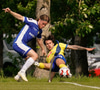 Ásgeir í góðu færi eftir góða sendingu frá Elfari en Daníel Hafsteins truflar hann eitthvað sem að verður til þess að skotið verður lélegt. Grímsi brýtur í kjölfarið.