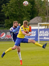 Aukaspyrna Hallgríms Mars ratar beint á kollinn á nafna hans Jónasson en boltinn svífur framhjá markinu.