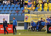 Grímsi tekur aukaspyrnuna með vinstri og er hún beint á Vladan í markinu. Í sömu andrá flautar Pétur til hálfleiks. Heimamenn leiða 1-0.
