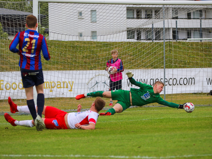 Hætta en Aron Birkir ver. Ingólfur með hælsendingu sem finnur Sævar Atla með svæði inn í teignum en lítinn tíma til að athafna sig. Sævar skýtur að marki í snúningnum en beint á Aron.