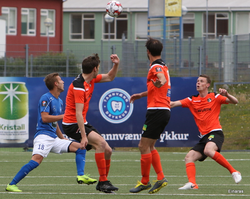 Klaufalegt með eindæmum. eftir snarpa sókn gestanna verður Jósef fyrir því að setja boltann í eigið net.