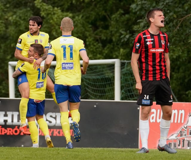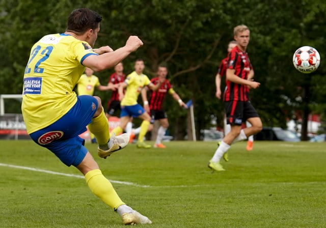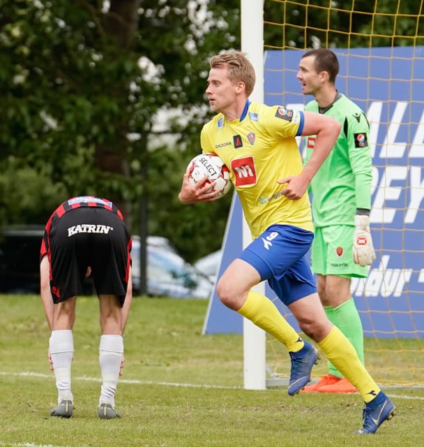 Gestirnir komnir yfir. Vá þetta var virkirlega vel gert hjá Guðmundi!! Sólar Callum upp úr skónum. Callum vissi ekki hvort hann var að koma eða fara og Guðmundur þakkar fyrir sig með að smella boltanum í fjærhornið! Laglegt!