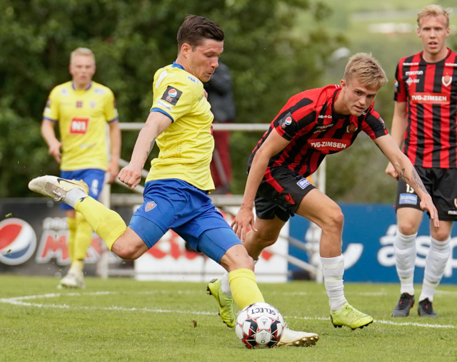 Hallgrímur nælir hér í aðra aukaspyrnu á góðum stað. Drengur er afskaplega lipur með boltann.