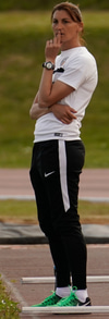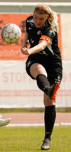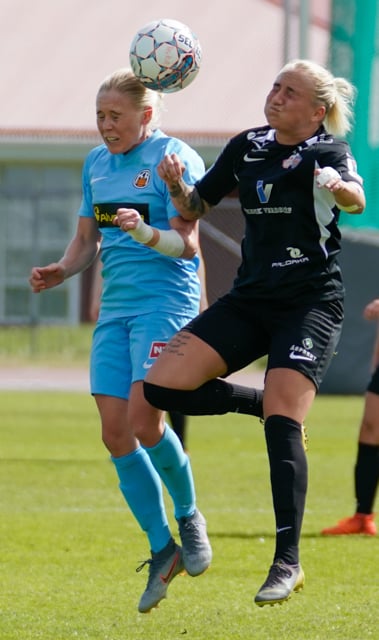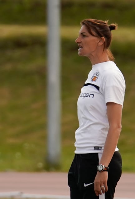 Þjálfari KR, Bojana Besic er varamarkmaður liðsins í dag. Hún spilaði sem miðvörður á sínum ferli sem leikmaður en er greinilega kattliðug á milli stanganna!