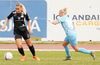 KATRÍN ÓMARS Í DAUÐAFÆRI!! Fær boltann inn fyrir og reynir að vippa yfir Hörpu en Arna Sif kemur á síðustu stundu og þrumar boltanum burt!