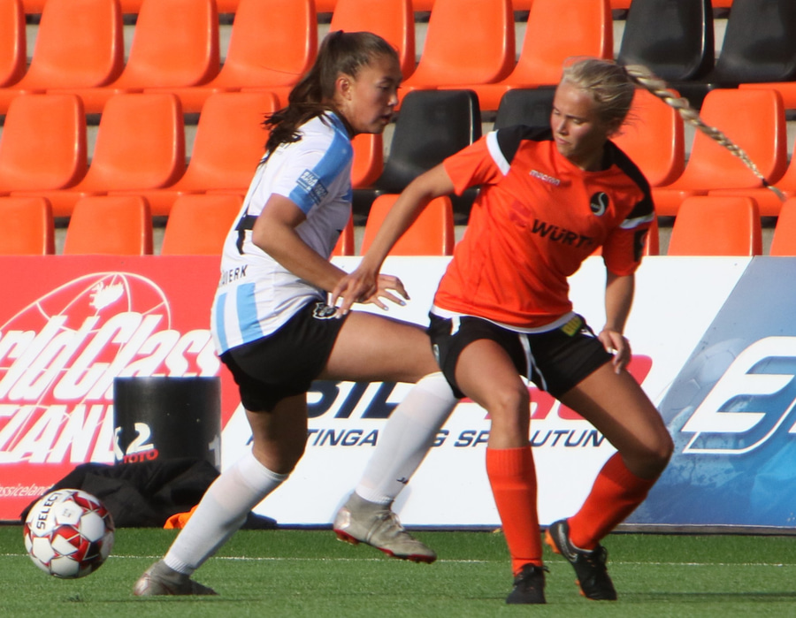Þórdís Elva á geggjaða sendingu inn á Ídu Marín. Ída Marín er ótrúlega fljót þegar hún kemst á ferðina og leikur inn á teig. Þar þvælist boltinn hinsvegar fyrir henni og hún skilur hann eftir áður en hún hleypur á Kelsey.