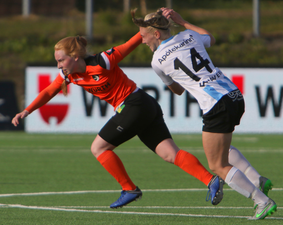 Hinum megin á vellinum bruna heimakonur í sókn sem endar á því að Karitas hreinsar eftir að Marija hafði sett hættulegan bolta út í teig frá vinstri.