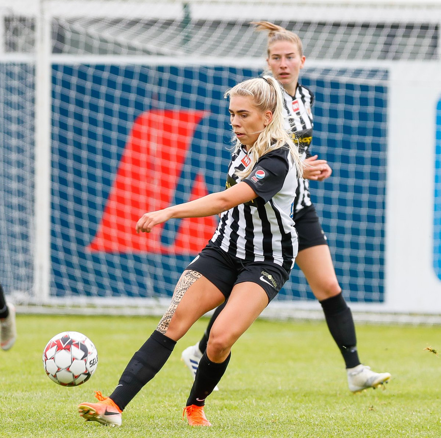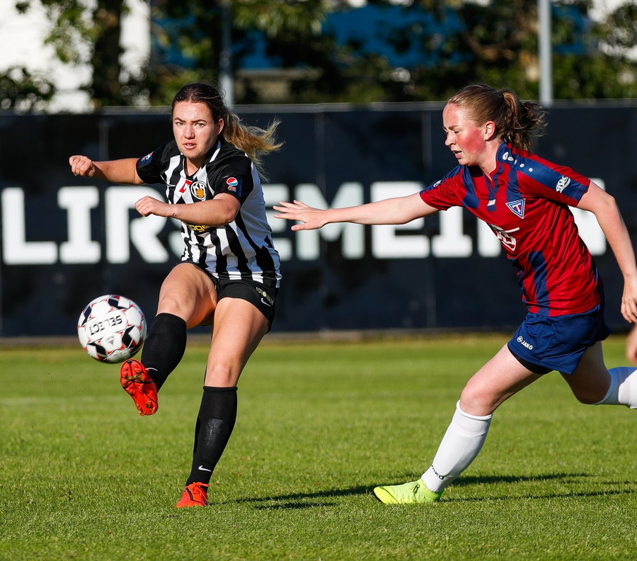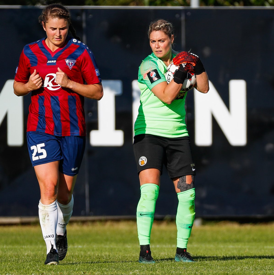 Hlíf á frábæra stungu inn á Betsy sem á fínt skot en Lauren er eldsnögg niður og nær að verja frá henni!