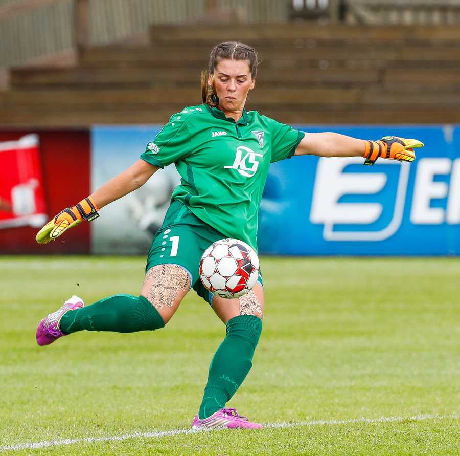 Sandra fékk frákastið en negldi þá í hliðarnetið.