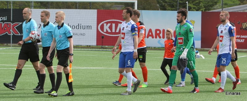 Jæja liðin ganga út á völlinn. KA er í varabúningi sínum í dag, hvítum treyjum með bláum ermum og stuttbuxurnar eru bláar.