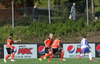 Daníel Hafsteinsson með skot eftir hornspyrnu en hitti boltann herfilega og skotið fór í varnarmann.
