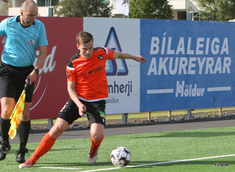 Hallgrímur Mar með góð tilþrif og það er brotið á honum. KA fær aukaspyrnu með fyrirgjafarmöguleika.