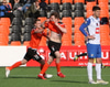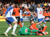 CASTILLION Í DAUÐAFÆR! Frábær stungusending frá Valdimar og Castillion er í dauðafæri en Jajalo gerir vel og lokar á skotið.