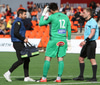 Aron markvörður Fylkis meiddist í atgangnum áðan og þurfti aðhlynningu. Hann heldur leik áfram en tekur ekki útspörkin.