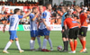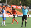 Ýmir með einhver læti eftir lokaflautið og fær gult spjald.