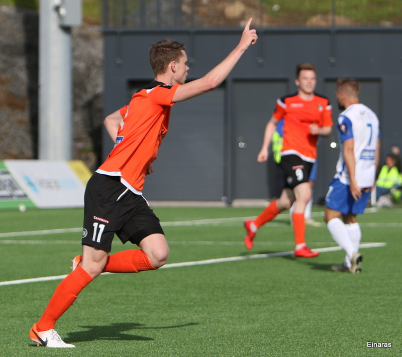 Vel gert hjá Hákoni Inga, fékk boltann frá Kolbeini og fór illa með Torfa áður en hann gaf fyrir. Valdimar var þar í dauðafæri í miðjum teignum og kláraði vel!