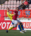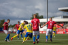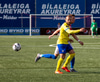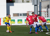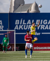 Almarr reynir að lyfta boltanum inn fyrir á Grímsa sem er aleinn en boltinn aðeins of fastur og fer í innkast.