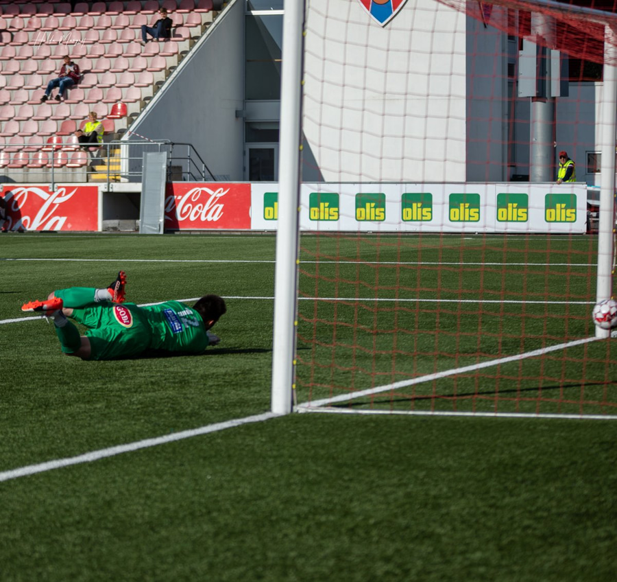 Vá þessi varsla hjá Jajalo! Óli Kalli fer í skotið sem er mjög fast og á leið upp í vinkilinn en Jajalo er mættur og ver stórkostlega.