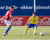 Kristinn Freyr með laglega sendingu inn fyrir, í snúningnum en Óli Kalli nær ekki stjórn á boltanum og missir boltann útaf.