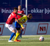 Birnir með boltann vinstra megin í teignum og ætlar utan á Hrannar en tekur hræðilega snertingu og missir boltann aftur fyrir.