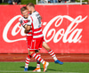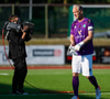 Damir leynir ekki pirringi sínum þegar hann er hér tekinn af velli. Sóknarmaður inn fyrir miðvörð.